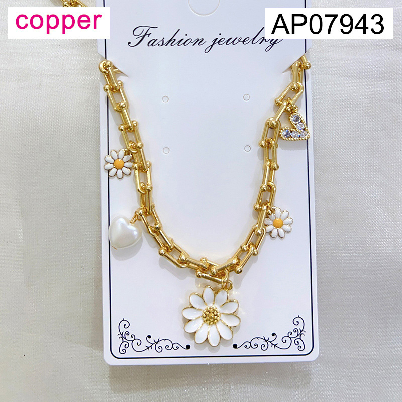 Home > Level B Fashion Jewelry New Trendy Women Jewelry Horseshoe buckle chain Drip Oil/Enamel Flower Heart Golden Pendant;Material:copper (cobre)