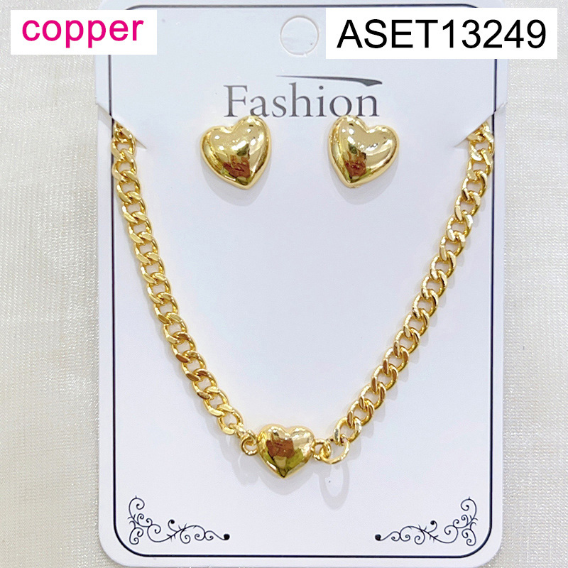 Home > Level B Fashion Jewelry New Trendy Women Jewelry Heart Golden Mother's Day SET;Material:copper (cobre)