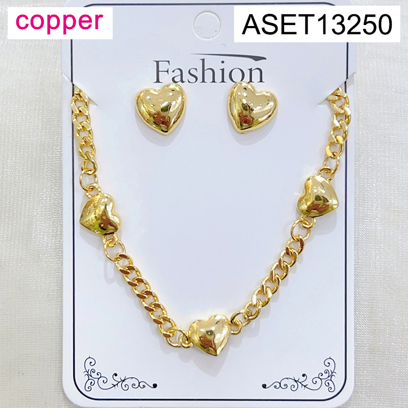 Level B Fashion Jewelry New Trendy Women Jewelry Heart Golden Mother's Day SET;Material:copper (cobre)