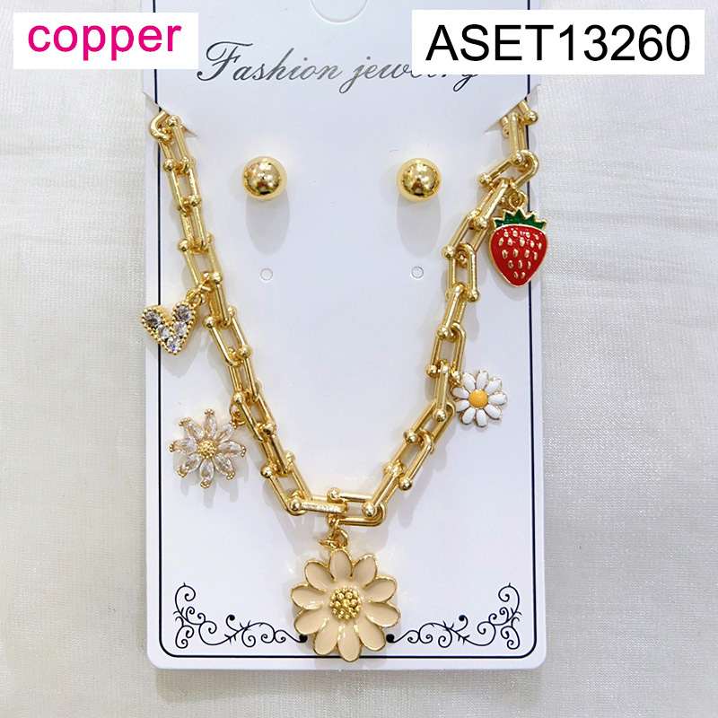 Level B Fashion Jewelry New Trendy Women Jewelry Horseshoe buckle chain Drip Oil/Enamel Summer fruit style Strawberry Flower Golden SET;Material:copper (cobre)