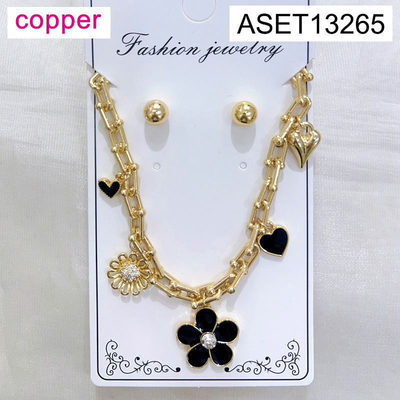 Level B Fashion Jewelry New Trendy Women Jewelry Horseshoe buckle chain Drip Oil/Enamel Flower Heart Golden SET;Material:copper (cobre)