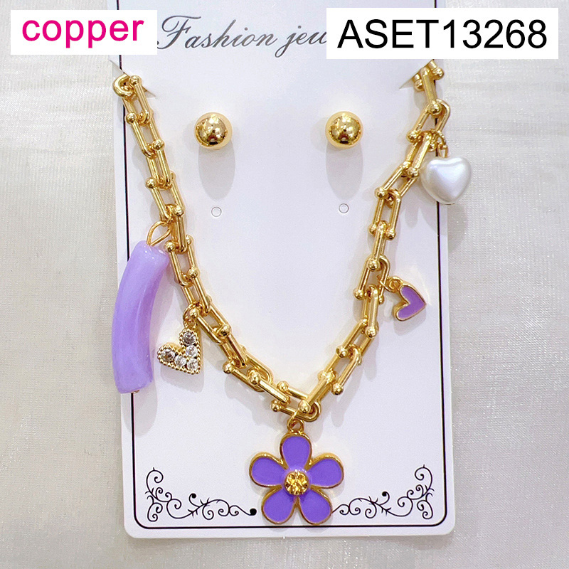 Home > Level B Fashion Jewelry New Trendy Women Jewelry Horseshoe buckle chain Drip Oil/Enamel Flower Heart Golden SET;Material:copper (cobre)
