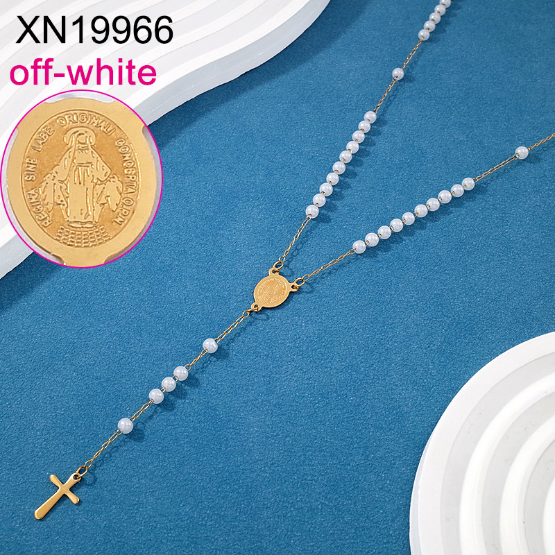 Home > Level B Stainless Steel New Trendy Women Jewelry Off-white Bead Chain Religion Cross Golden Necklace