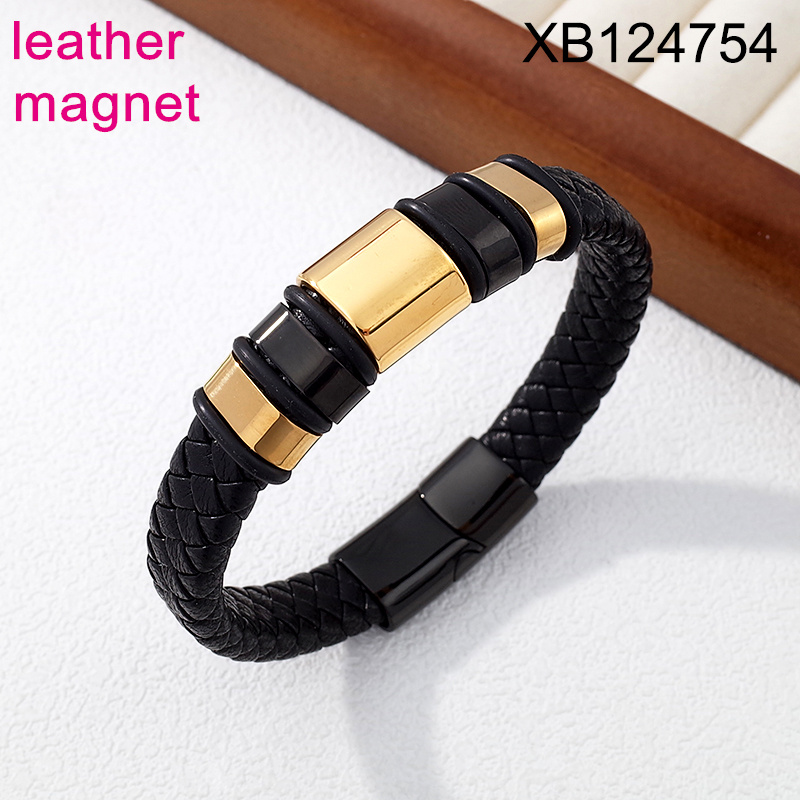 Home > Level B Stainless Steel New Trendy Man Jewelry Two Tone Magnet Leather Bracelet