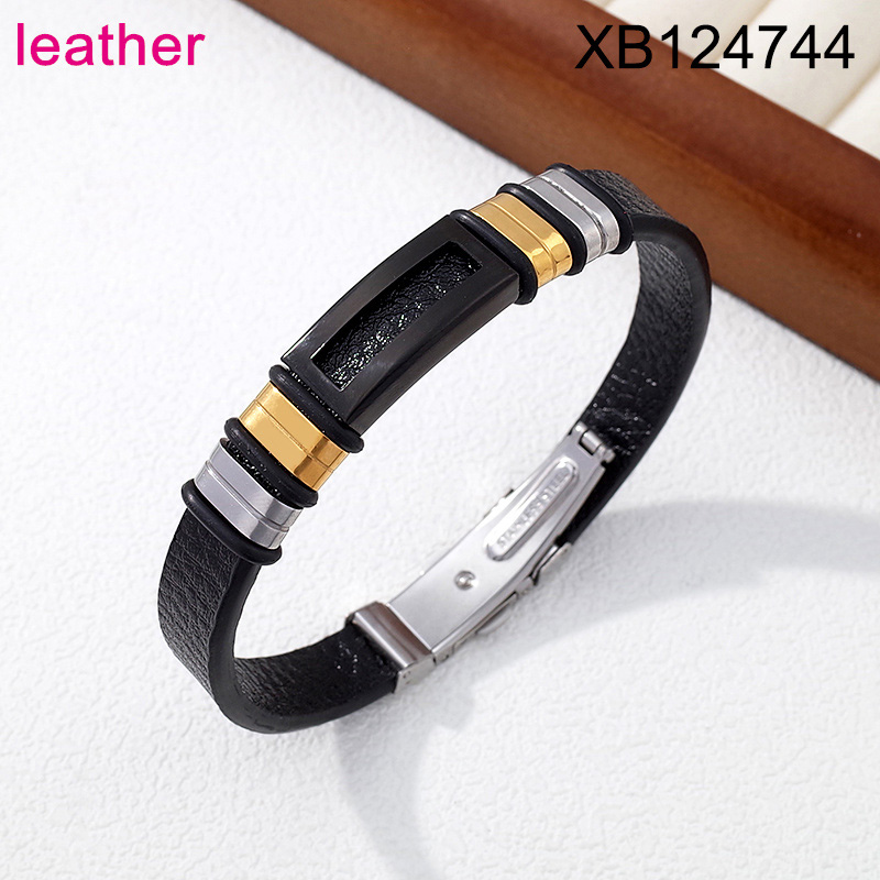 Home > Level B Stainless Steel New Trendy Man Jewelry Three Tone Leather Bracelet
