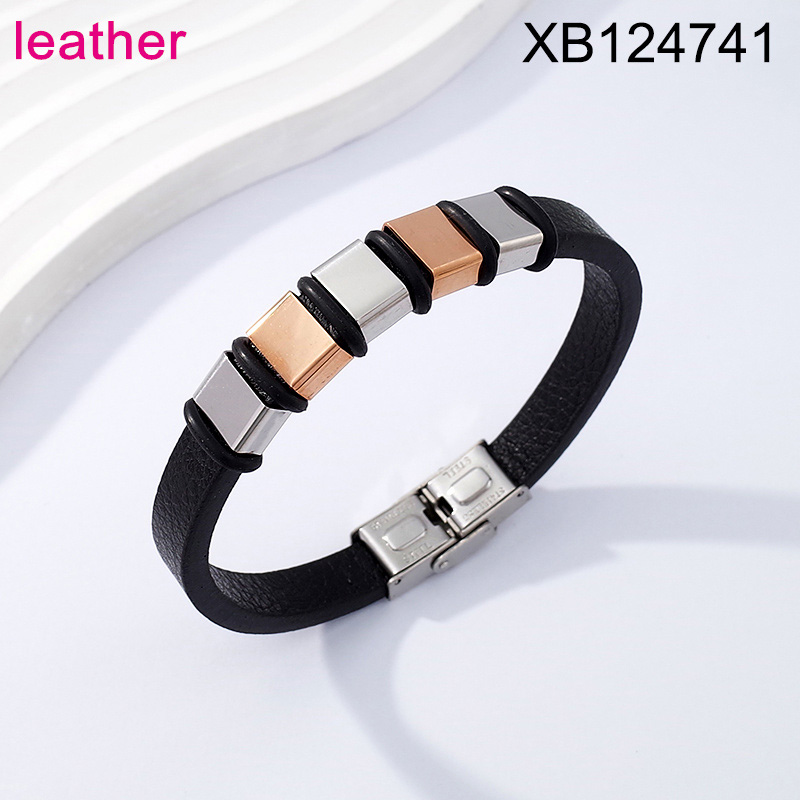 Home > Level B Stainless Steel New Trendy Man Jewelry Two Tone Leather Bracelet