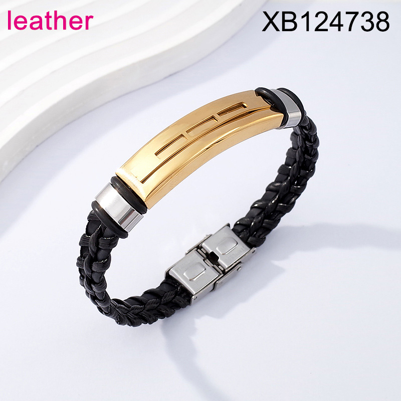 Home > Level B Stainless Steel New Trendy Man Jewelry Two Tone Leather Bracelet
