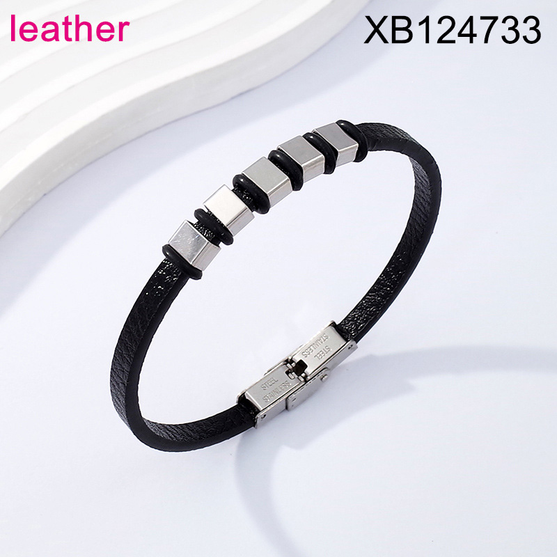 Level B Stainless Steel New Trendy Man Jewelry Steel color Leather Bracelet