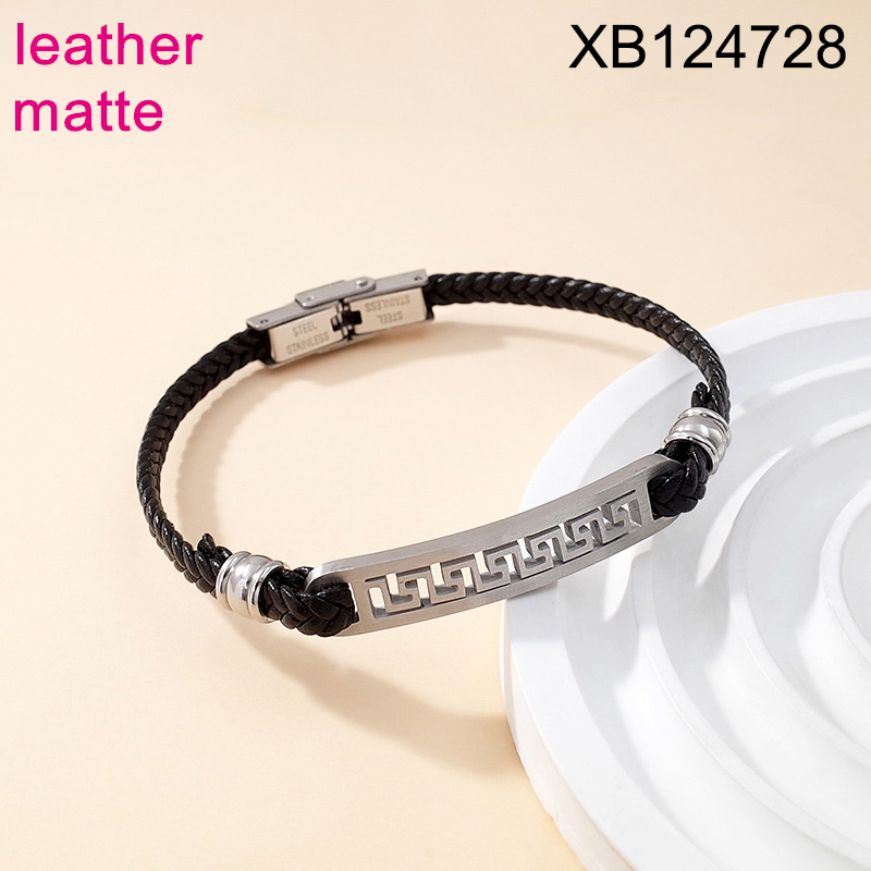 Home > Level B Stainless Steel New Trendy Man Jewelry Matte Great Wall Pattern Steel color Leather Bracelet