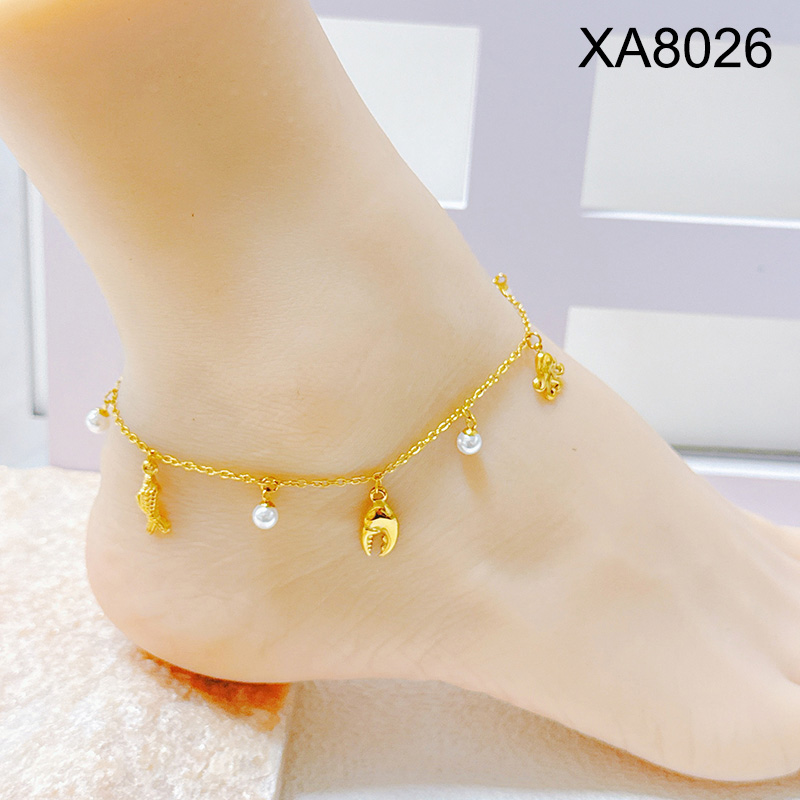 Level B Stainless Steel New Trendy Women Jewelry Pearl Style/Plastic Beads Summer beach Animal Crab Octopus Fish Golden Anklet