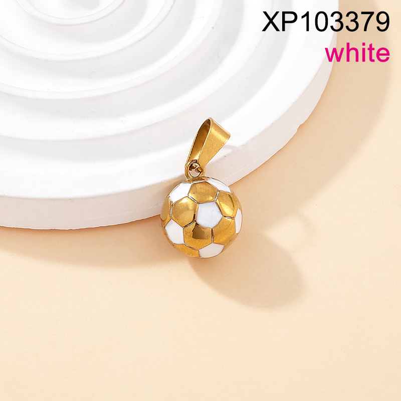 Level B Stainless Steel New Trendy Women Jewelry Drip Oil/Enamel White Football Golden Pendant