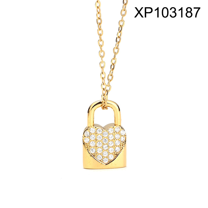 Level B Stainless Steel New Trendy Women Jewelry Lock Heart Golden Valentine's Day Pendant