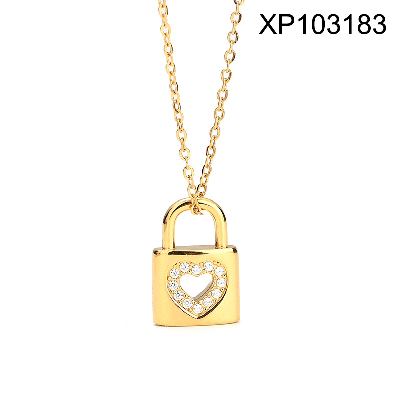 Level B Stainless Steel New Trendy Women Jewelry Lock Heart Golden Valentine's Day Pendant