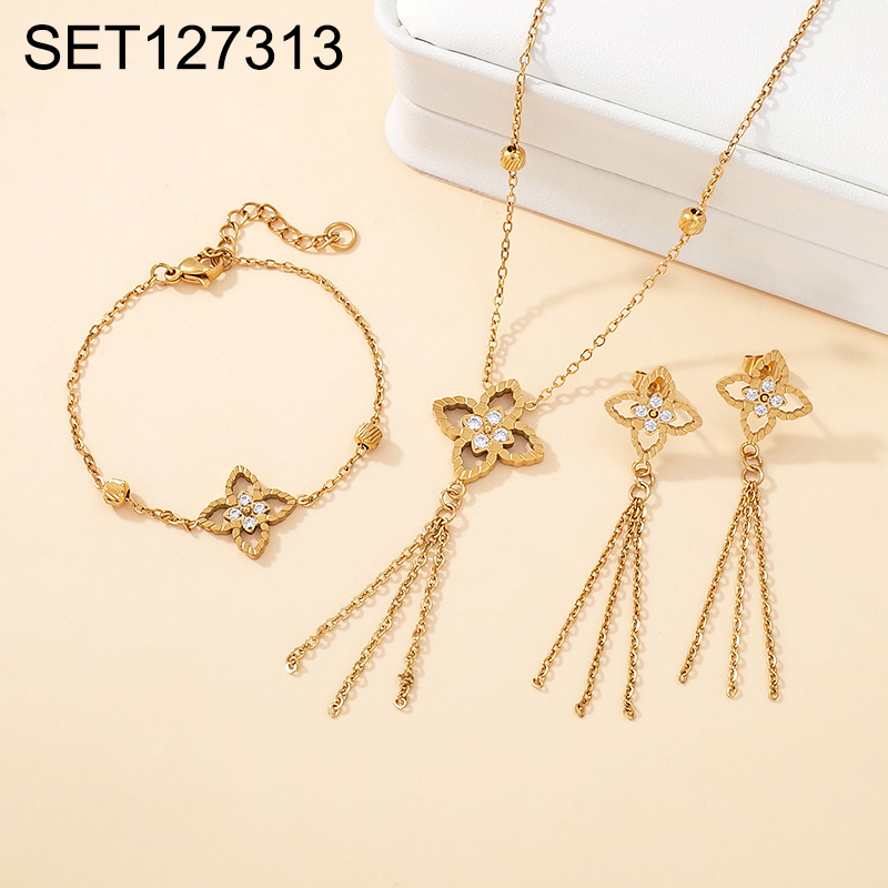 Level A Stainless Steel New Trendy Women Jewelry SYC Golden 3pcs SET