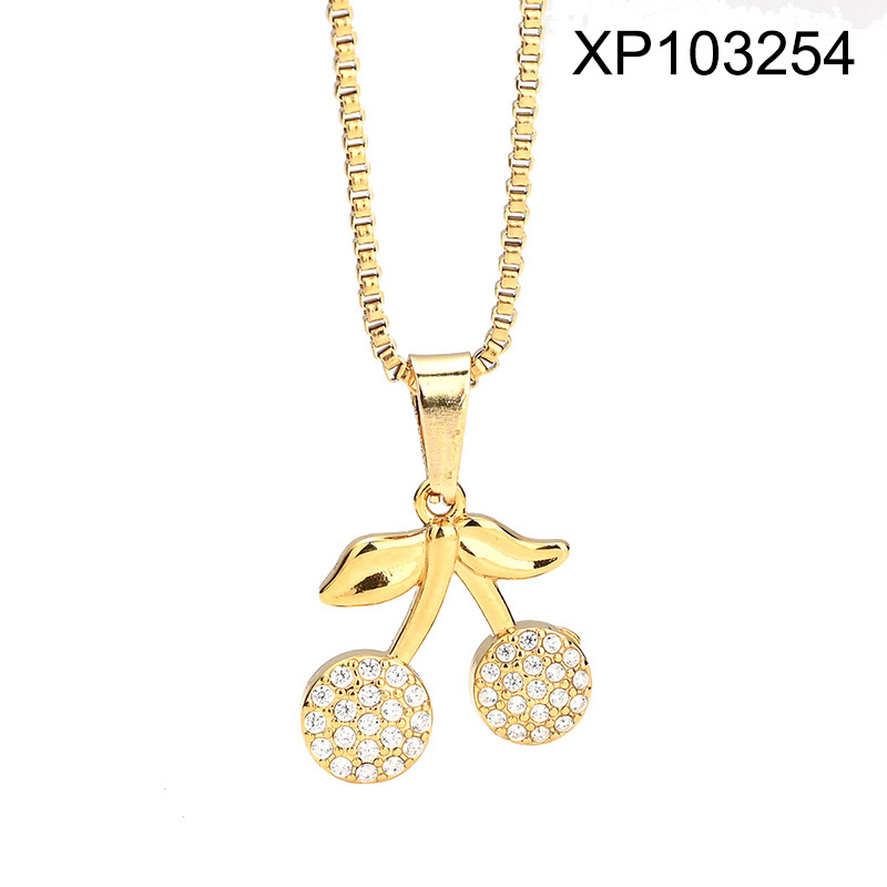Level B Stainless Steel New Trendy Women Jewelry Summer fruit style Cherry Golden Pendant