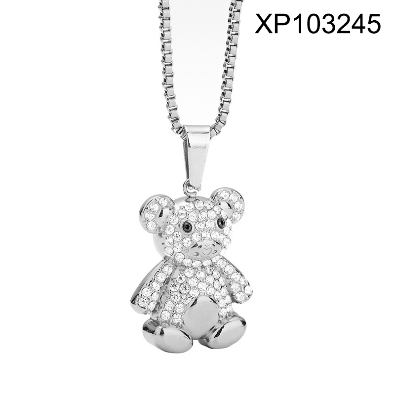 Level B Stainless Steel New Trendy Women Jewelry Animal Bear Steel color Pendant