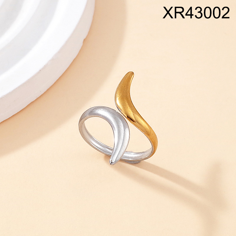 Level B Stainless Steel New Trendy Women Jewelry Two Tone Open Rings;Ring size can be adjusted freely
