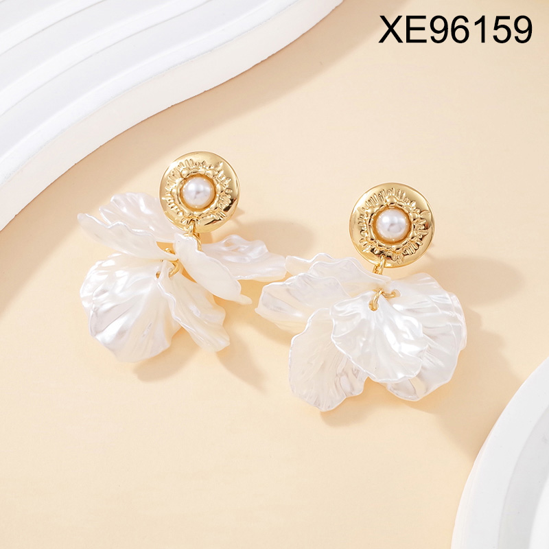 Level B Stainless Steel New Trendy Women Jewelry Pearl Style/Plastic Beads Petal Golden Earrings
