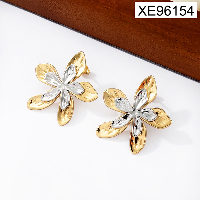 Level B Stainless Steel New Trendy Women Jewelry Flower Two Tone Earrings
