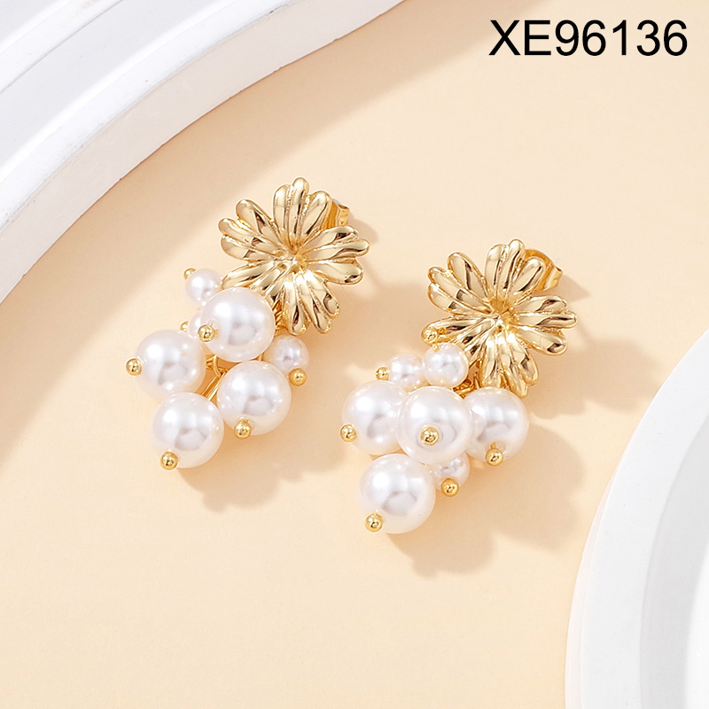 Level B Stainless Steel New Trendy Women Jewelry Pearl Style/Plastic Beads Golden Earrings