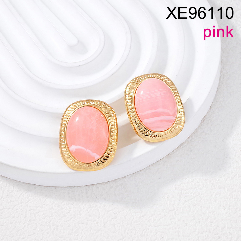 Home > Level B Stainless Steel New Trendy Women Jewelry Oval Pink Resin Golden Earrings