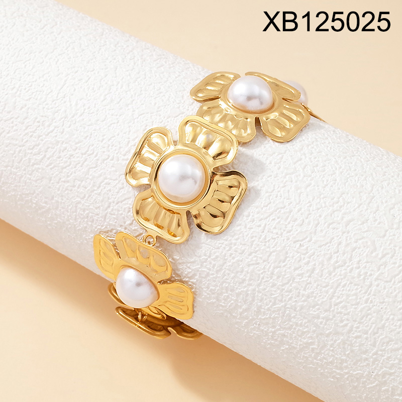 Home > Level B Stainless Steel New Trendy Women Jewelry Pearl Style/Plastic Beads Flower Golden Bracelet