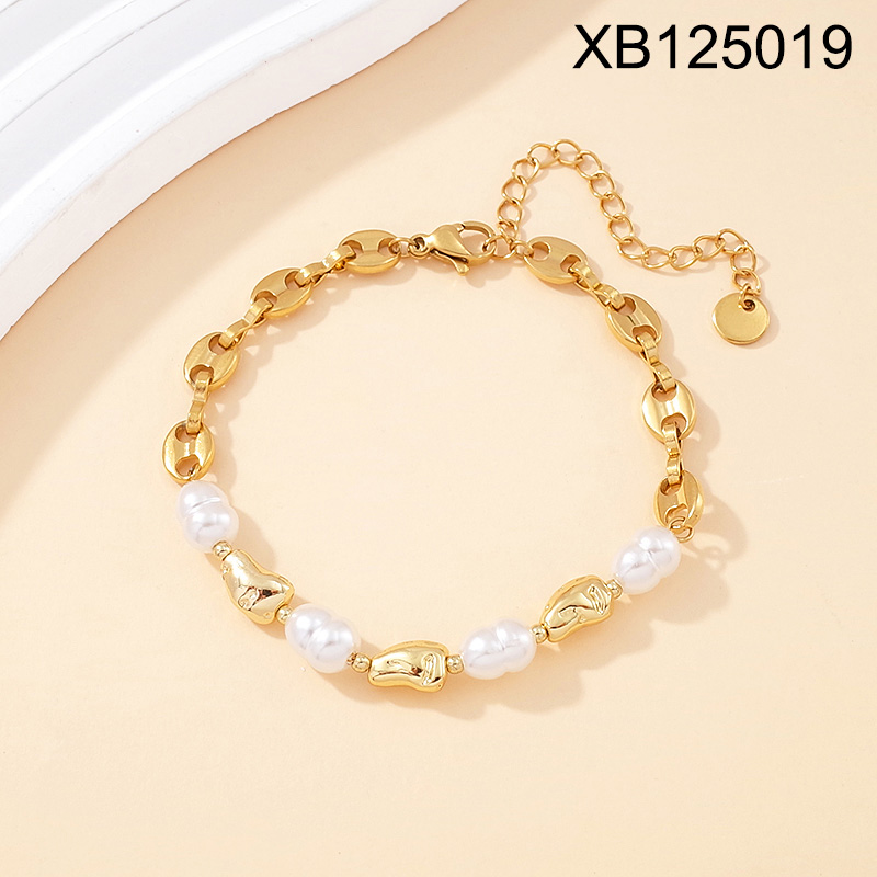 Level B Stainless Steel New Trendy Women Jewelry Pearl Style/Plastic Beads Coffee Beans Pig nose Oval Golden Bracelet