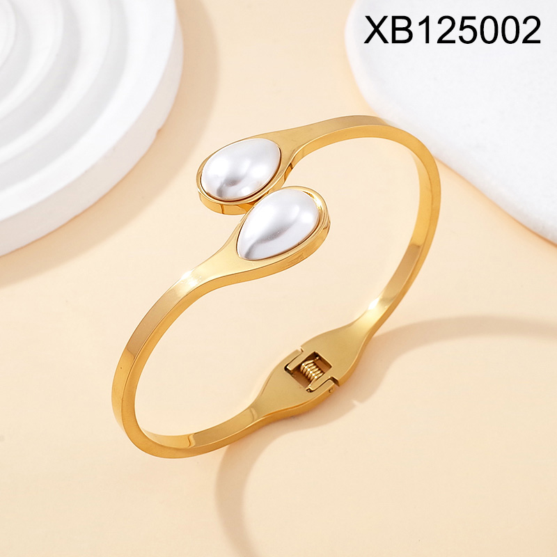 Level B Stainless Steel New Trendy Women Jewelry Pearl Style/Plastic Beads Water Drip Golden Bangle