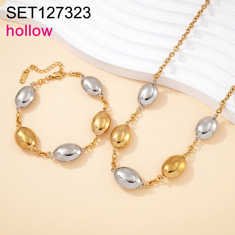 Level B Stainless Steel New Trendy Women Jewelry Hollow Oval Two Tone Chain SET