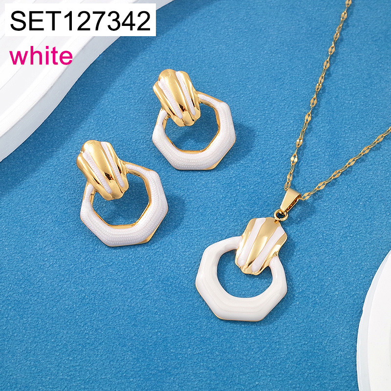 Level C Stainless Steel New Trendy Women Jewelry Drip Oil/Enamel White Geometry Golden SET