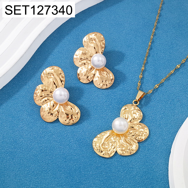 Level C Stainless Steel New Trendy Women Jewelry Pearl Style/Plastic Beads Flower Golden SET