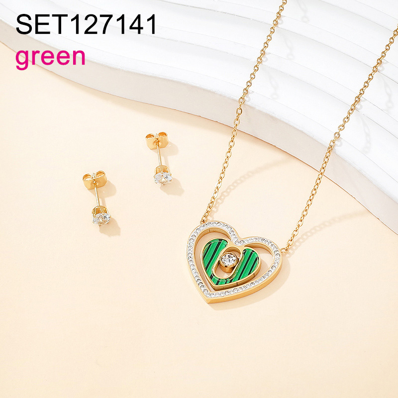 Home > Stainless Steel Sets > Semi-precious Stones Jewelry Sets > Level B Stainless Steel New Trendy Women Jewelry Heart Golden Valentine's Day SET