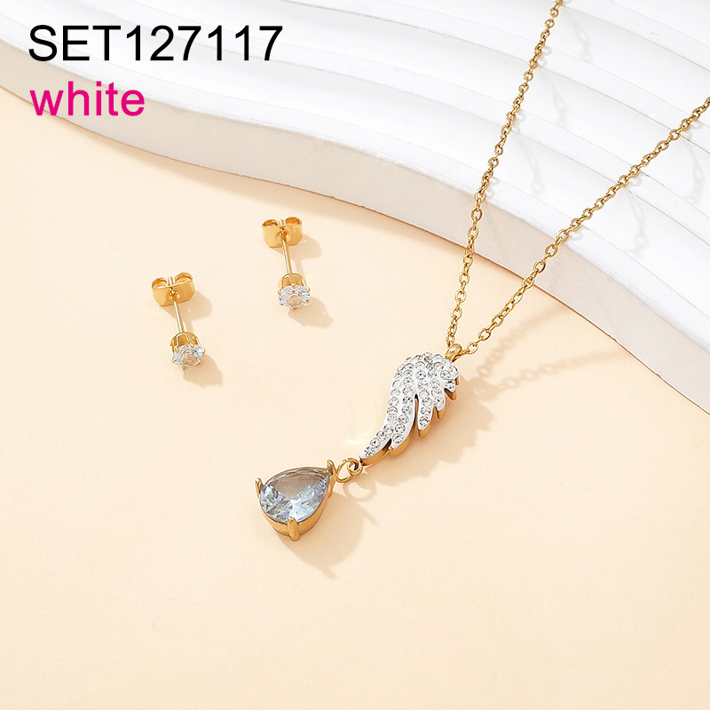 Home > Stainless Steel Sets > Semi-precious Stones Jewelry Sets > Level B Stainless Steel New Trendy Women Jewelry Animal Wing Water Drip Golden SET
