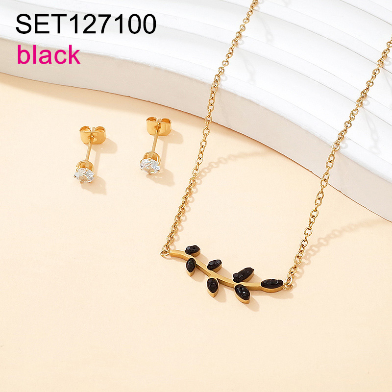 Home > Stainless Steel Sets > Semi-precious Stones Jewelry Sets > Level B Stainless Steel New Trendy Women Jewelry Leaf Golden SET