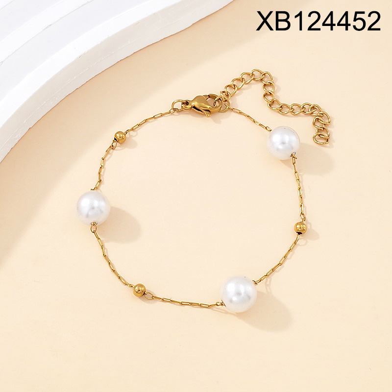 Level B Stainless Steel New Trendy Women Jewelry Pearl Style/Plastic Beads Golden Bracelet