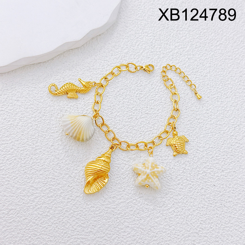 Home > Stainless Steel Bracelets > Level B Stainless Steel New Trendy Women Jewelry Summer beach Animal Conch Seahorse Turtle Golden Bracelet