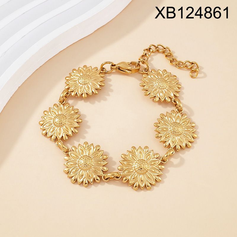 Level B Stainless Steel New Trendy Women Jewelry Flower Golden Bracelet