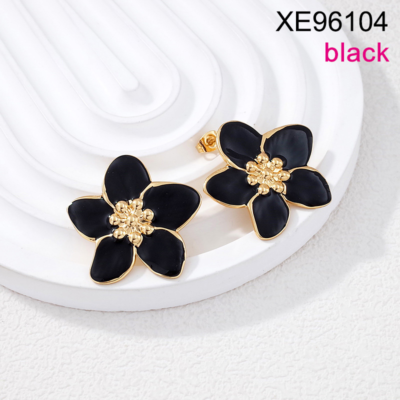 Home > Stainless Steel Earrings > Epoxy Earrings > Level B Stainless Steel New Trendy Women Jewelry Drip Oil/Enamel Black Flower Golden Earrings