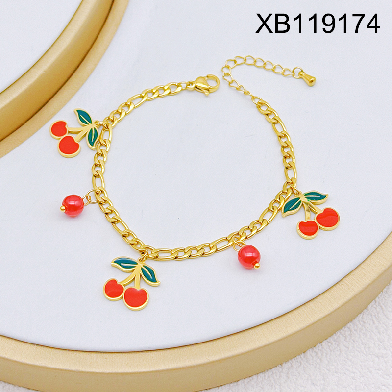 Home > Stainless Steel Bracelets > Other Bracelets > Level B Stainless Steel New Trendy Women Jewelry Drip Oil/Enamel Summer fruit style Cherry Golden Bracelet