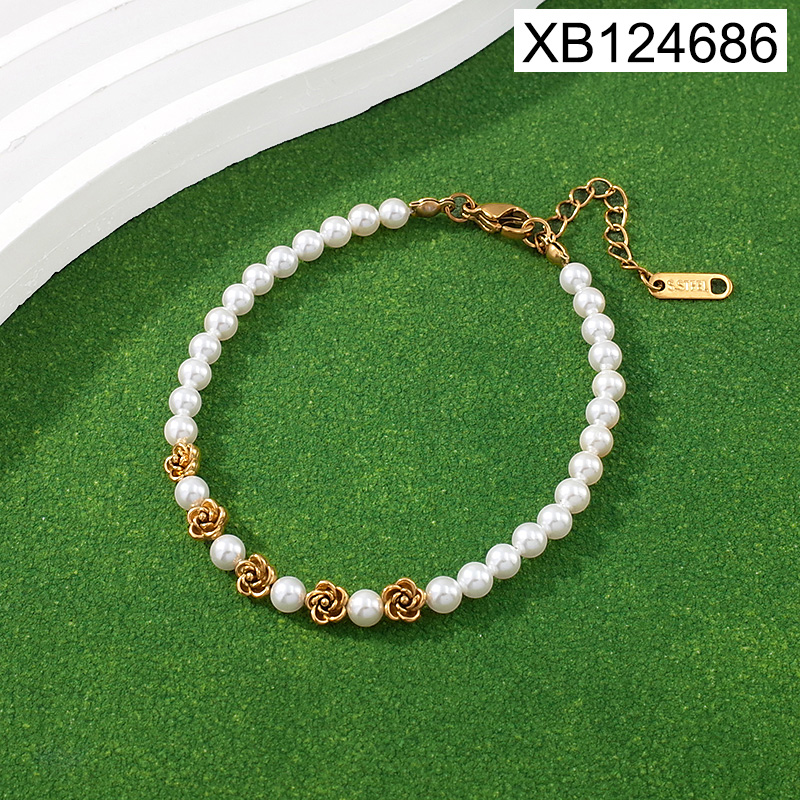 Level B Stainless Steel New Trendy Women Jewelry Pearl Style/Plastic Beads Flower Golden Bracelet
