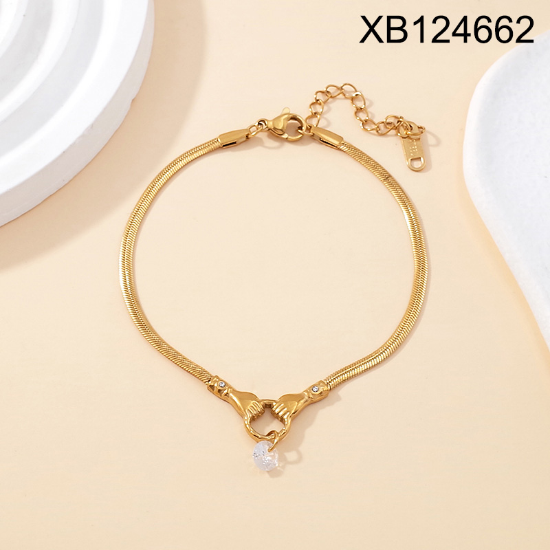 Home > Stainless Steel Bracelets > Other Bracelets > Level B Stainless Steel New Trendy Women Jewelry Hands Zircon Golden Bracelet