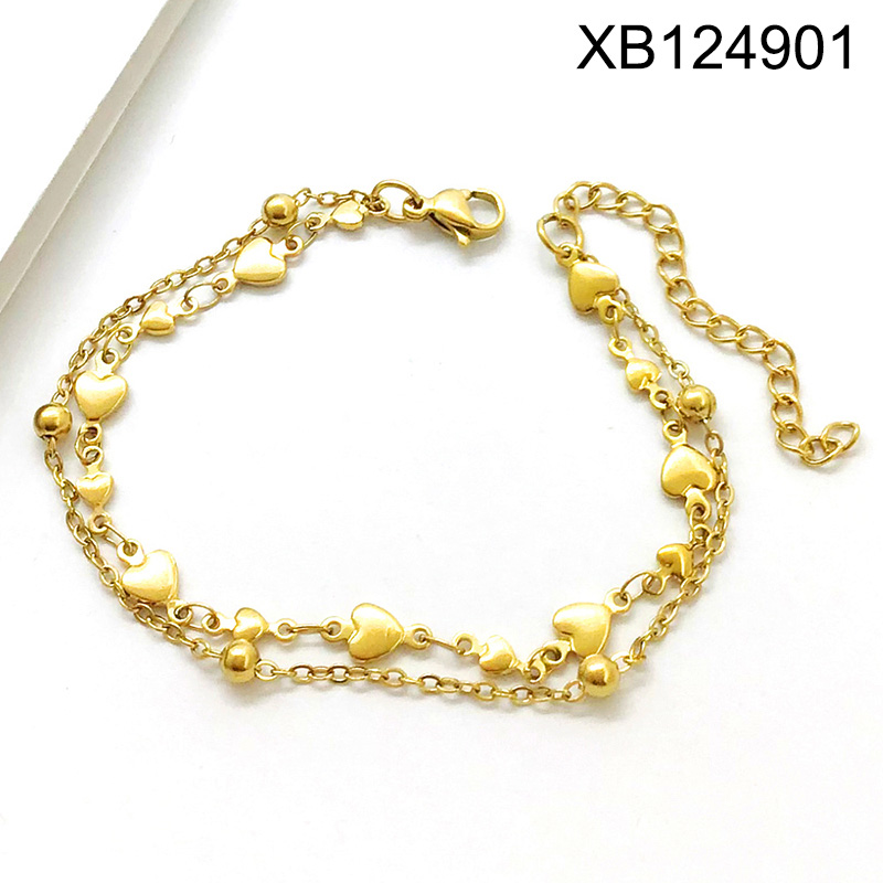 Level B Stainless Steel New Trendy Women Jewelry Two Layers Chain Heart Golden Bracelet