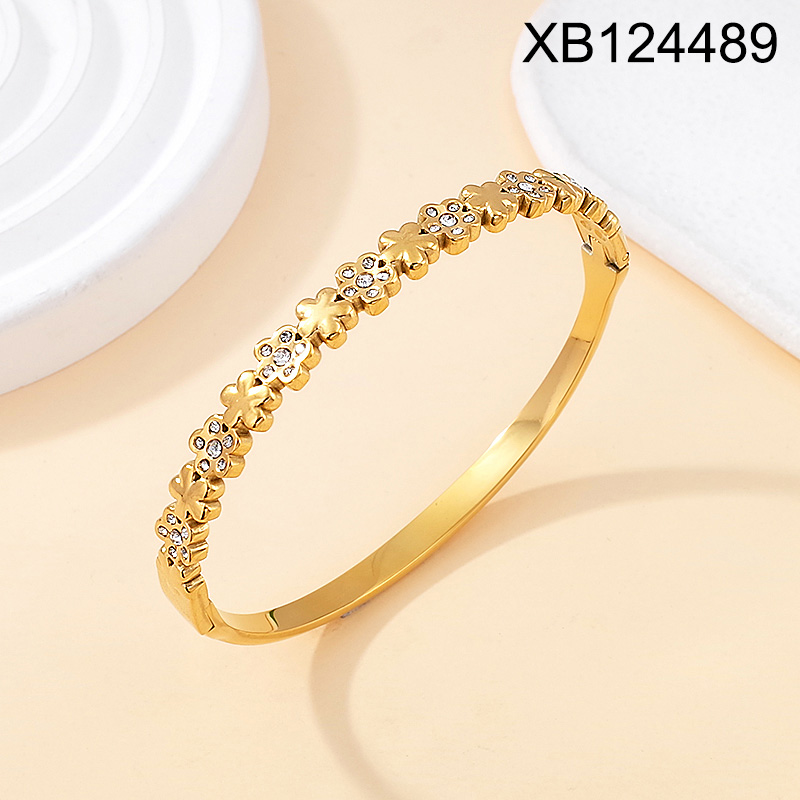 Level B Stainless Steel New Trendy Women Jewelry Flower Golden Bangle