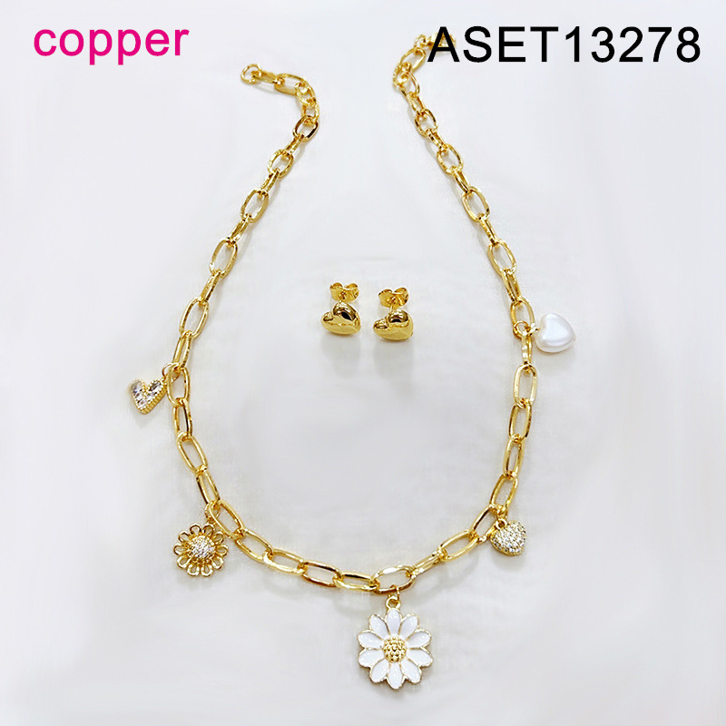 Home > Fashion Jewelry > Level B Fashion Jewelry New Trendy Women Jewelry Drip Oil/Enamel Flower Golden SET;Material:copper (cobre)
