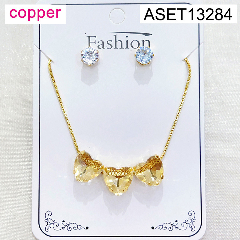Level B Fashion Jewelry New Trendy Women Jewelry Heart Golden Mother's Day SET;Material:copper (cobre)