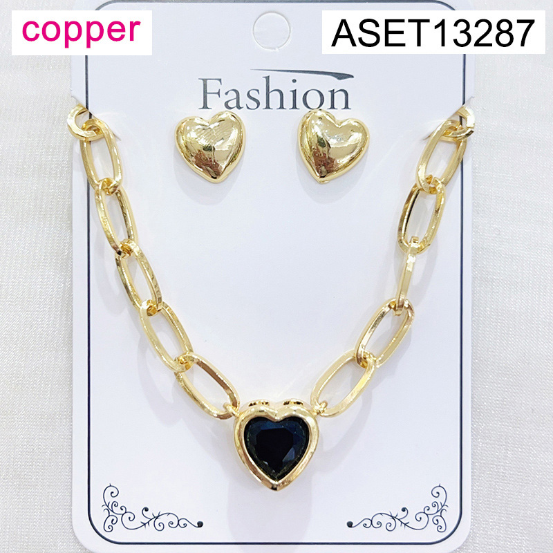 Level B Fashion Jewelry New Trendy Women Jewelry Heart Golden Mother's Day SET;Material:copper (cobre)