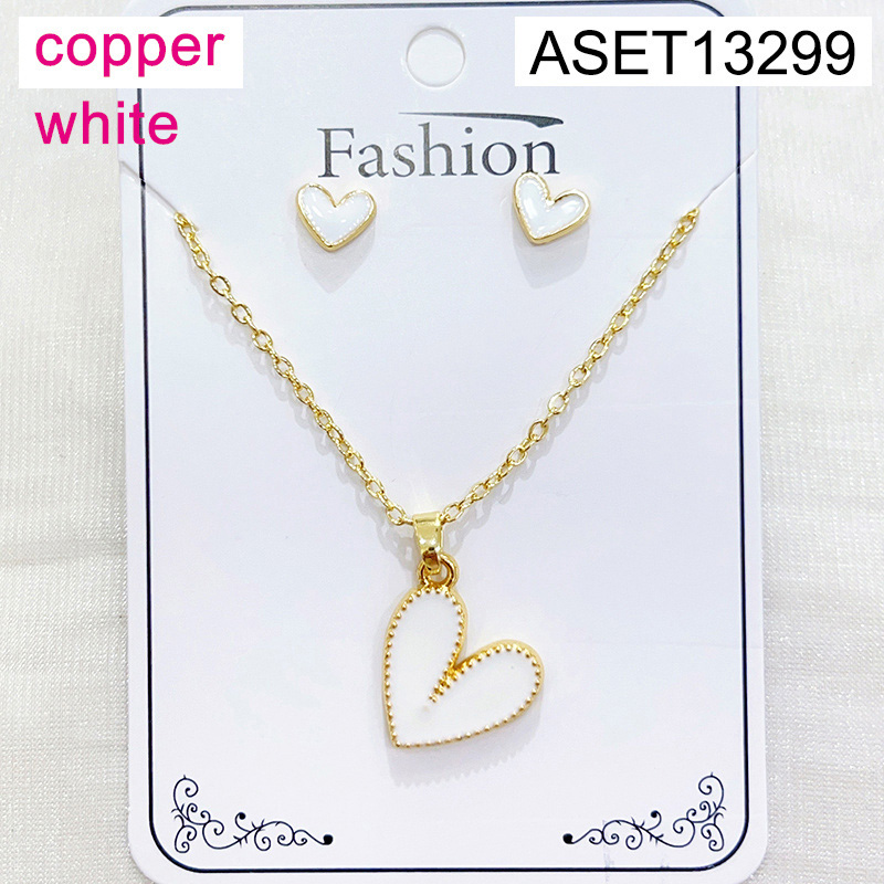Level B Fashion Jewelry New Trendy Women Jewelry Drip Oil/Enamel Heart Golden Mother's Day SET;Material:copper (cobre)
