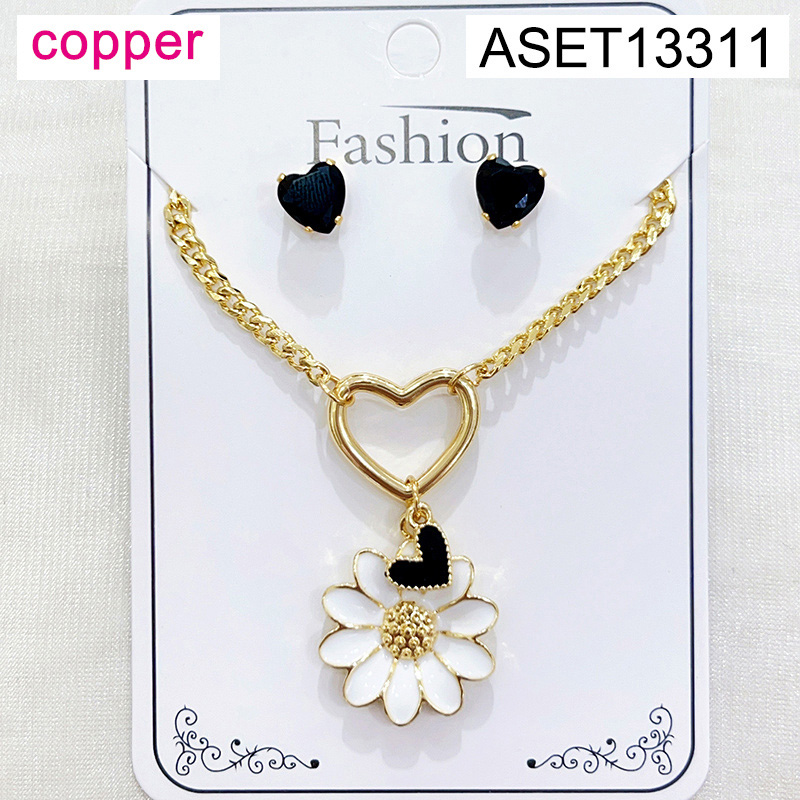 Level B Fashion Jewelry New Trendy Women Jewelry Drip Oil/Enamel Flower Heart Golden Mother's Day SET;Material:copper (cobre)