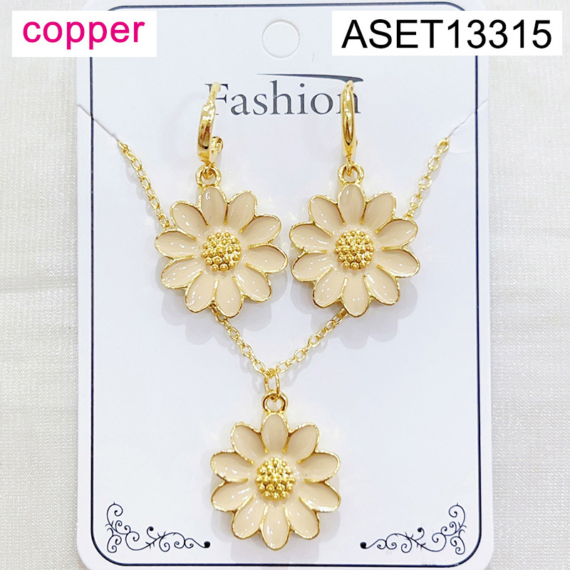 Home > Fashion Jewelry > Level B Fashion Jewelry New Trendy Women Jewelry Drip Oil/Enamel Flower Golden SET;Material:copper (cobre)