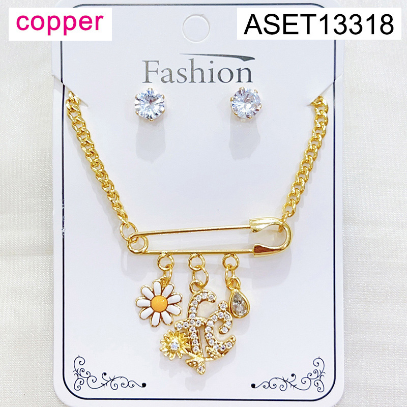 Home > Fashion Jewelry > Level B Fashion Jewelry New Trendy Women Jewelry Pin Flower Letter Golden SET;Material:copper (cobre)